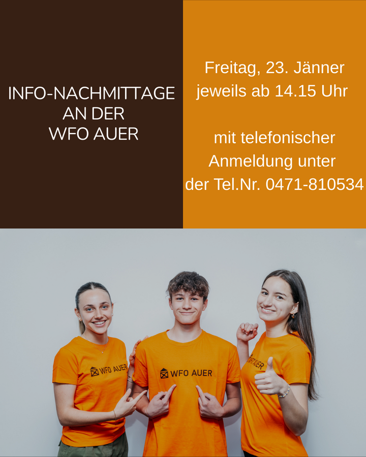 Wirtschaftsfachoberschule Auer Bildstöcklweg 12, I-39040 Auer, Tel. 0471 81 05 34 E-Mail: wfo.auer@schule.suedtirol.it PEC: ofl.auer@pec.prov.bz.it